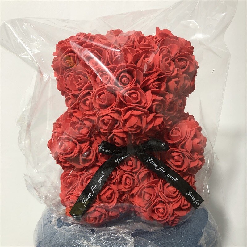 25cm Artificial Rose Teddy Bear Eternal Flower Bubble Bear Handmade Roses Bear Valentine's Day Wedding Bithday for Women