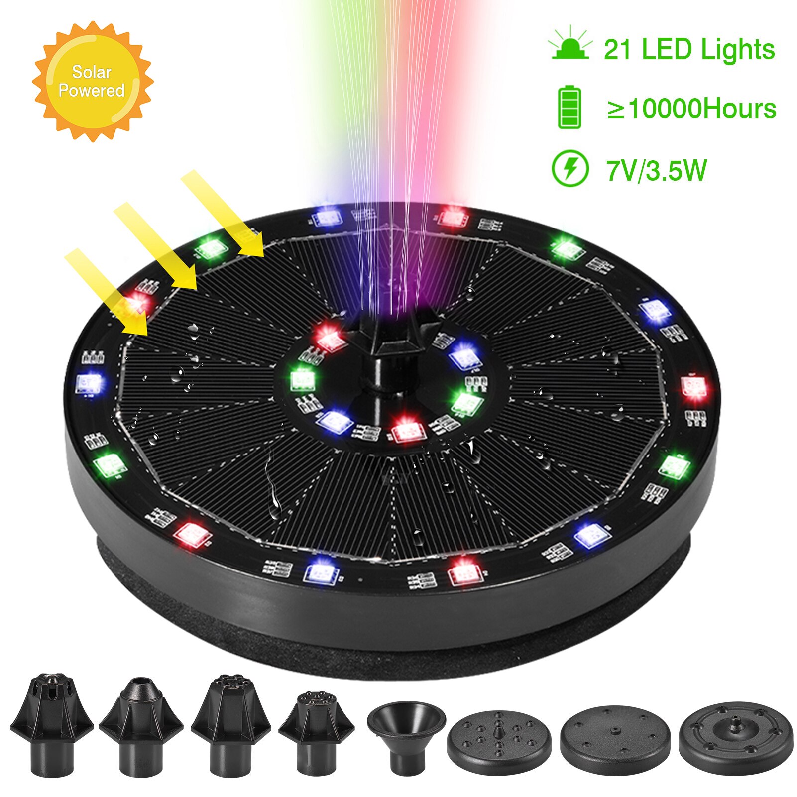 3.7V-10V /1.2W-3.5W Solar Fountain Floating Fountain Swimming Pool Water Pump Solar Panel LED Colorful Lights Shower Fountain