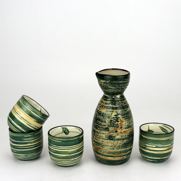 5 Pcs Ceramic Japanese Sake Set Bottle Cups With Cork Stopper Bar Crockery Wine Warm Sets 16 Pattern Wood Tray