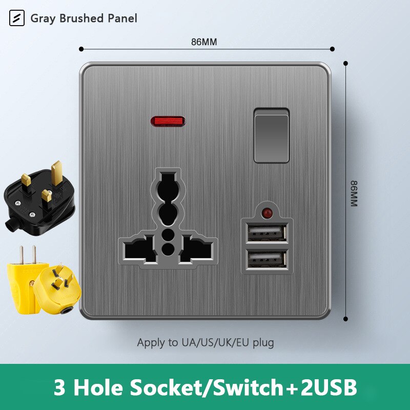 Atlectric Usb Wall Socket Standard Electrical Socketes Gray brushed Panel Multi-function Socket With Switch For Home AC110-250V