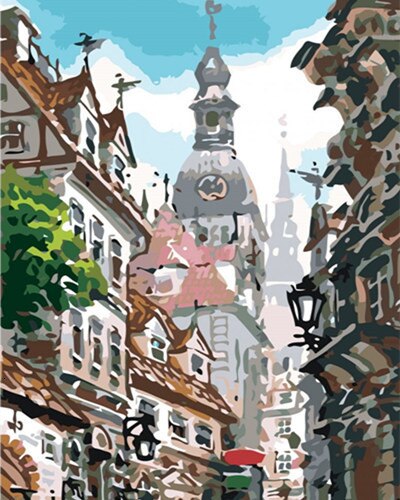 AZQSD Oil Painting By Numbers Landscape DIY Acrylic Paint Coloring By Numbers City Scenery Canvas Pictures Living Room