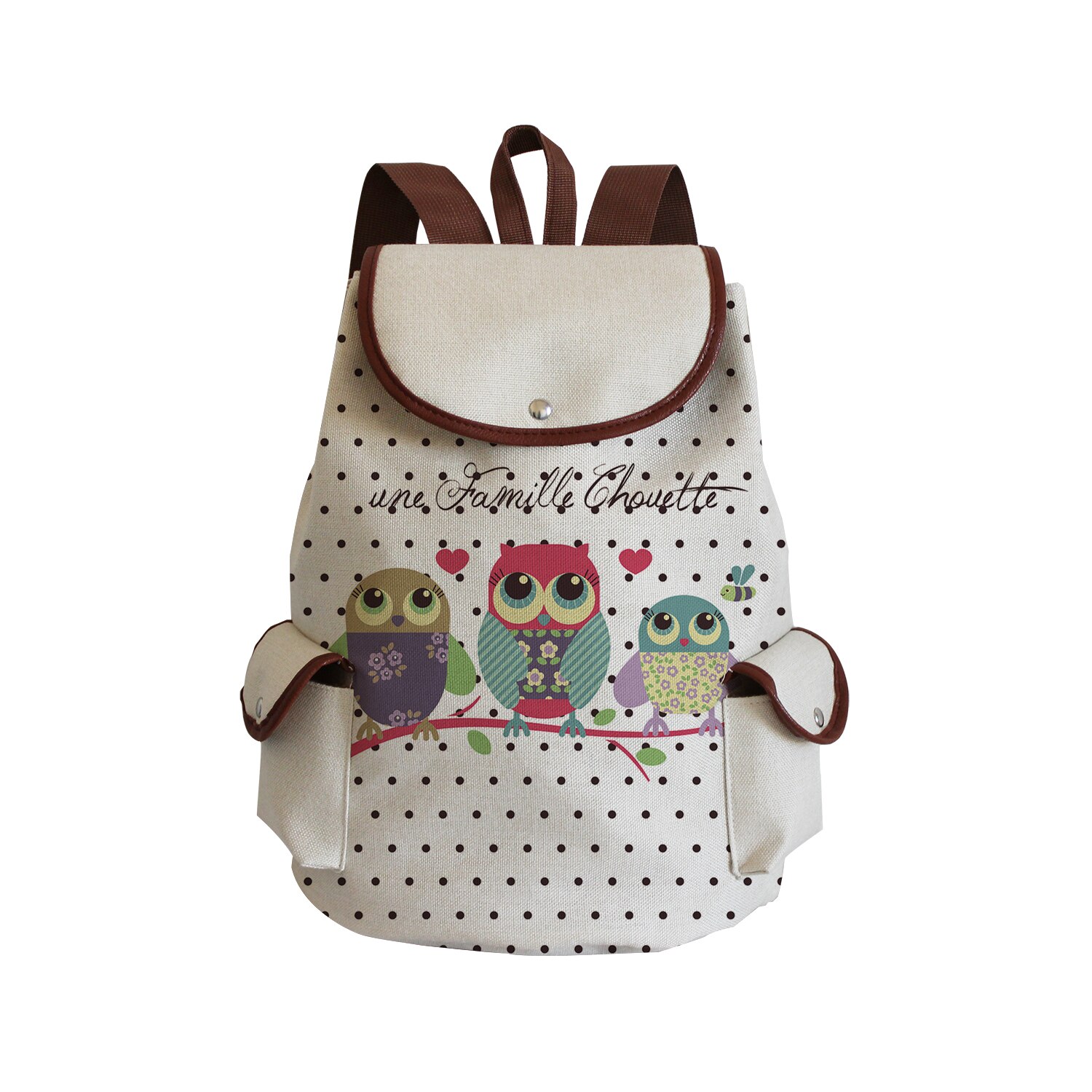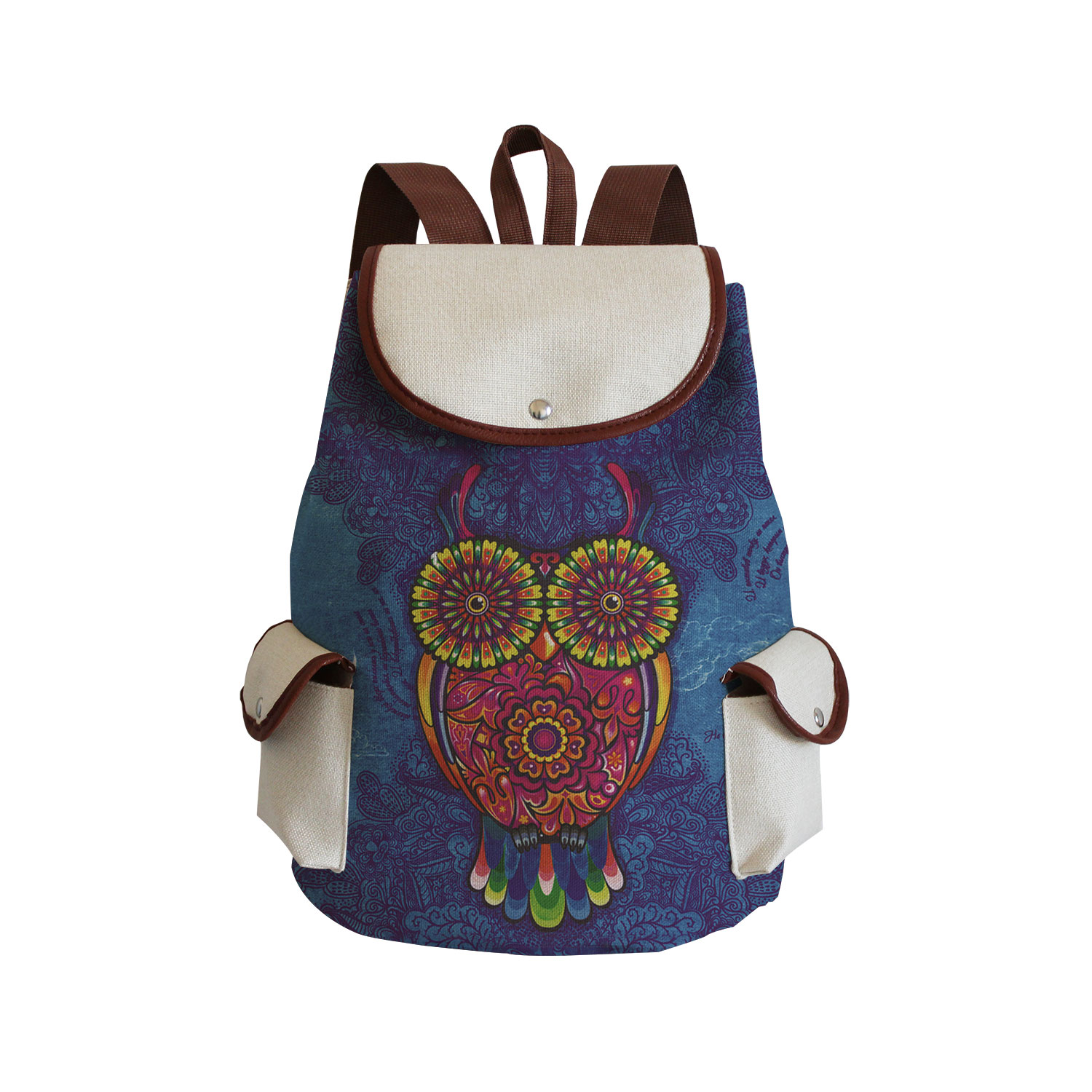 Cartoon Owl Print Linen Backpack Animal Large Capacity Portable Drawstring Backpack Chinese Storage Travel Women Casual Book Bag