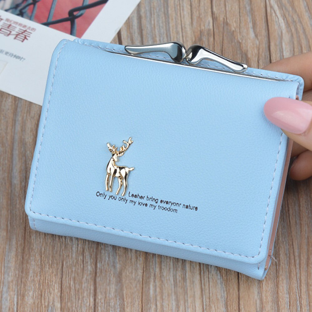 Cute Wallets Leather Women Wallets Short Wallet Student Coin Purse Card Holder Ladies Clutch Bag Small Deer Female Purse