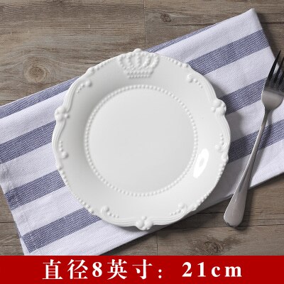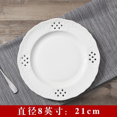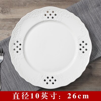 Embossed Bone China Dishes European-style Hollow Dishes Ceramic Tableware Western Dishes Salad Dishes Steak Dishes