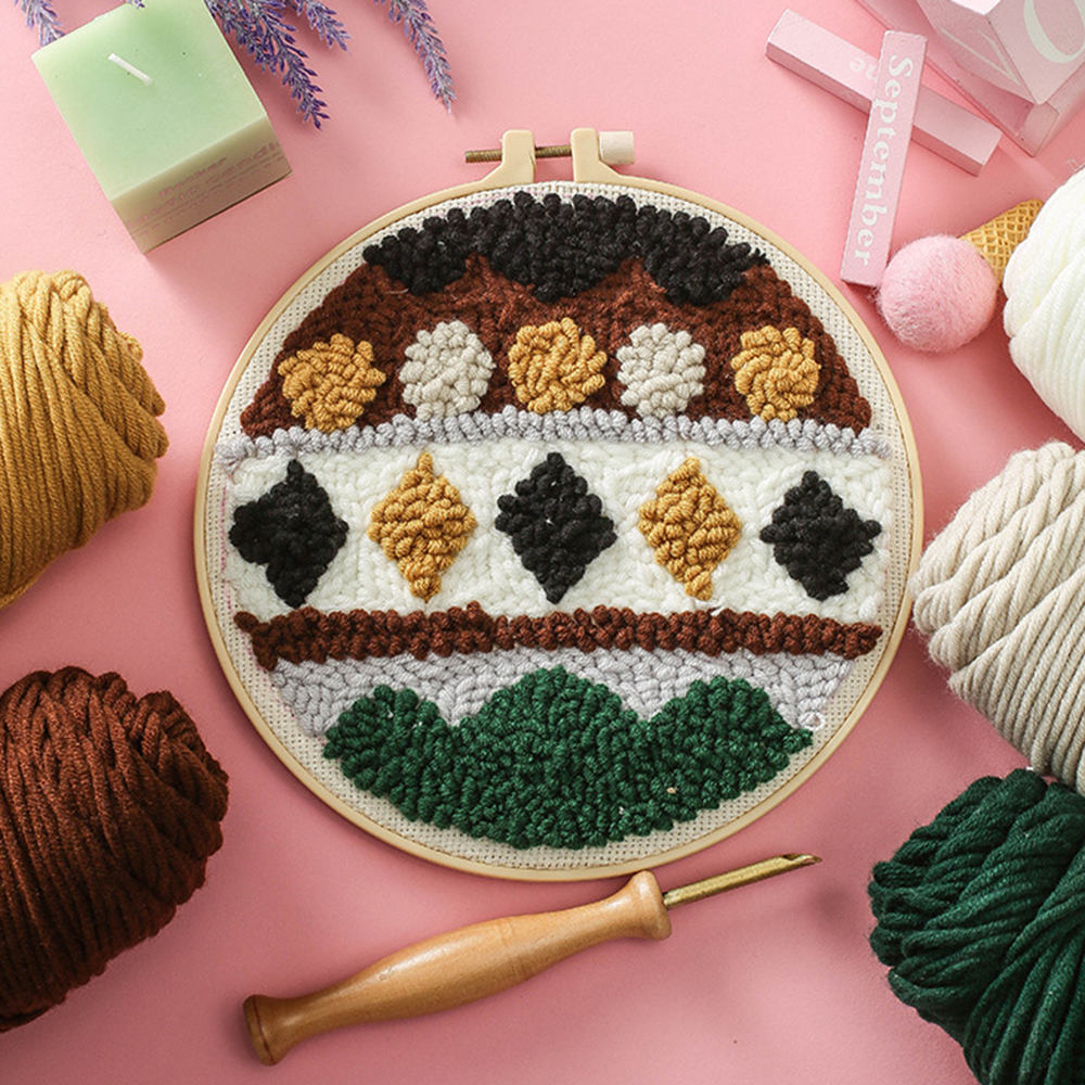 Embroidery Punchneedle Kit W/ Hoop Cross Stitch Set Punch Needle Embroidery For Handmade Beginner Decor