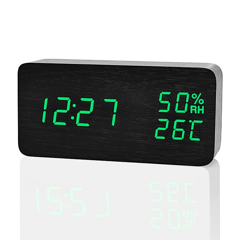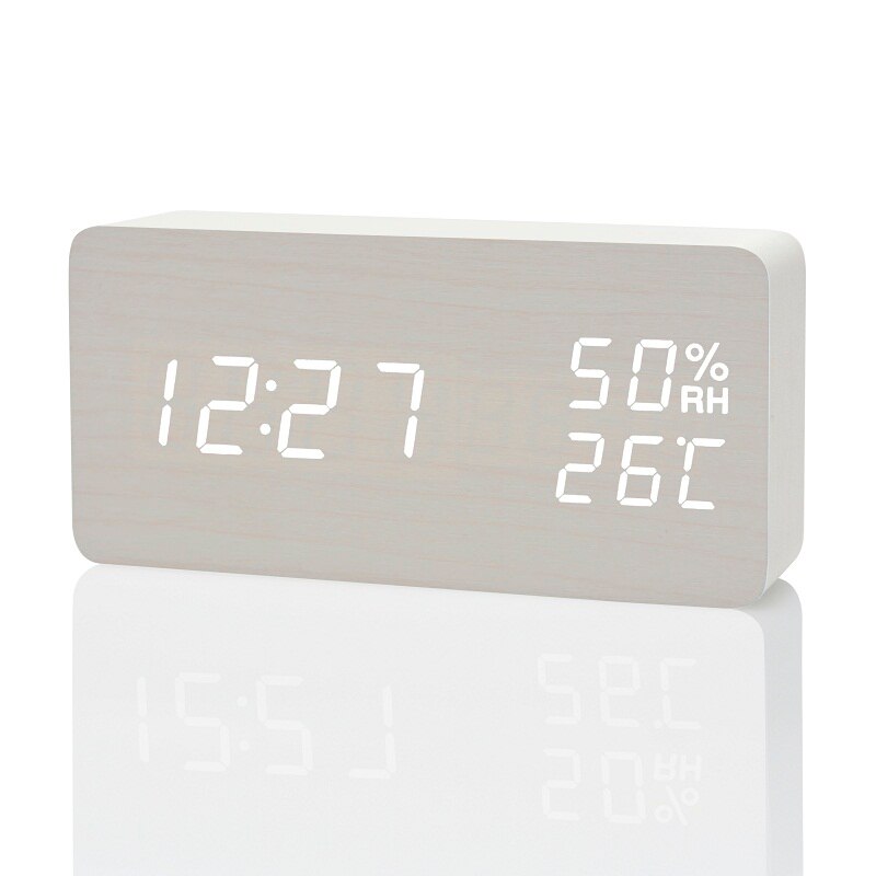 FiBiSonic Modern Simple LED Alarm Clock Temperature Humidity Show Clock Desktop Electronic Sound Control Digital Clocks Table De