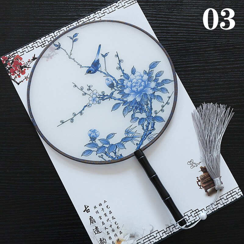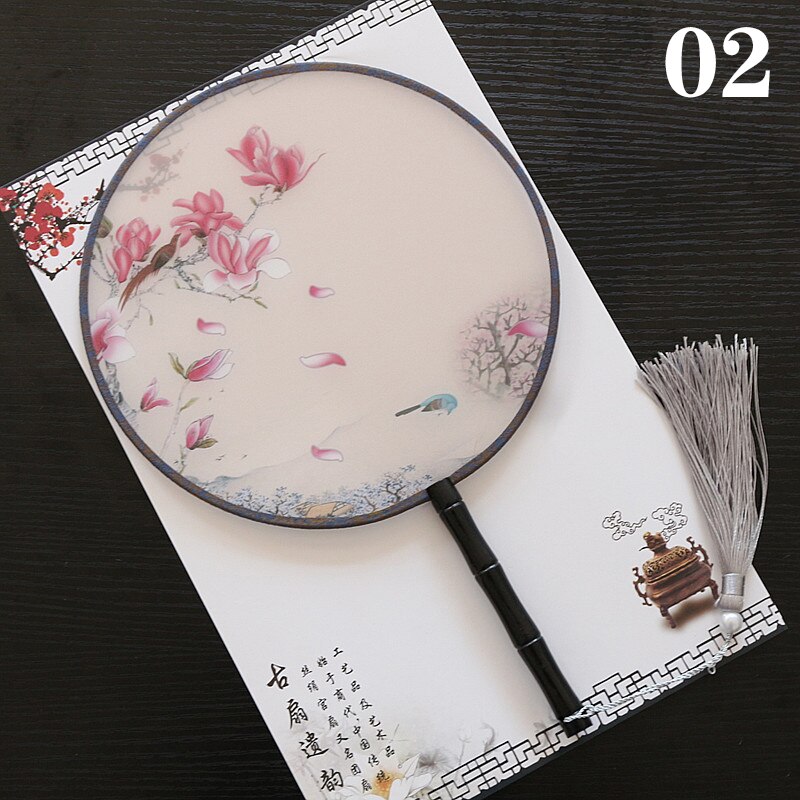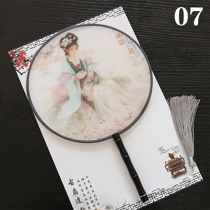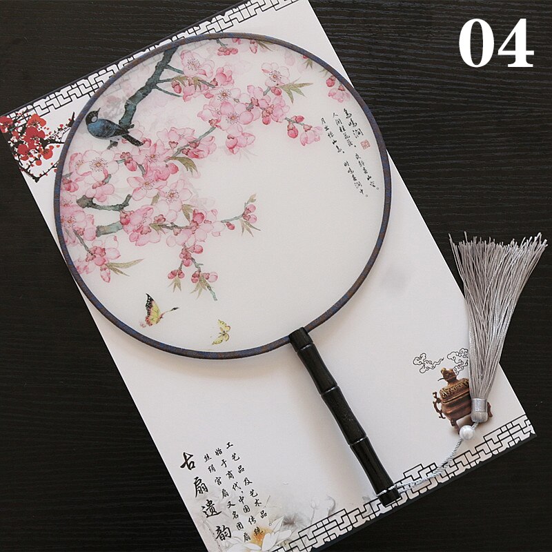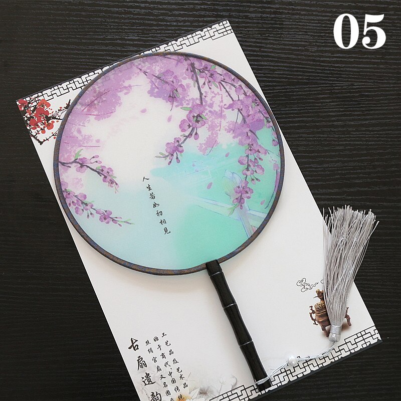 Hanfu Circular Fans Vintage Tassel Long Handle Ancient Chinese Style Court Dancing Round Fan Classical Printed Wedding Round Fan