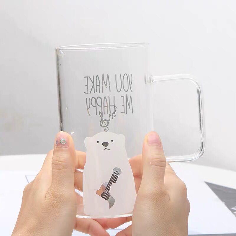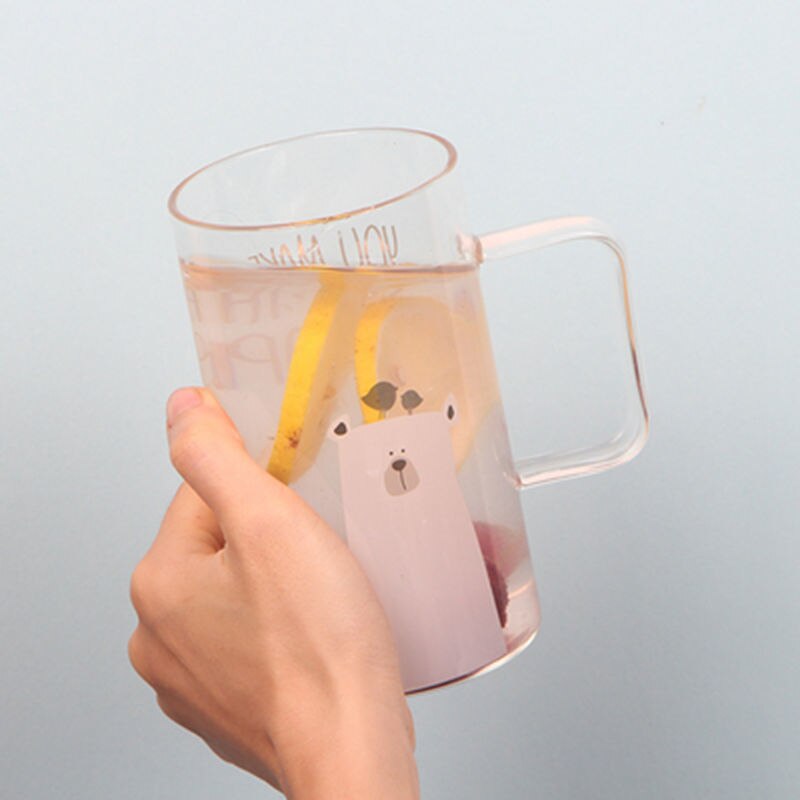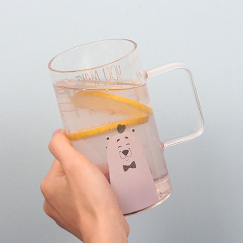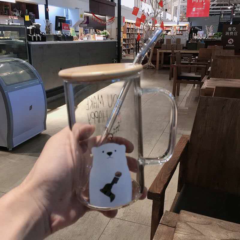 High borosilicate glass Glass Cup Bear Pattern Transparent Glass Bottle Drinking tea cup with Straw with Lid Cute Large Capacity