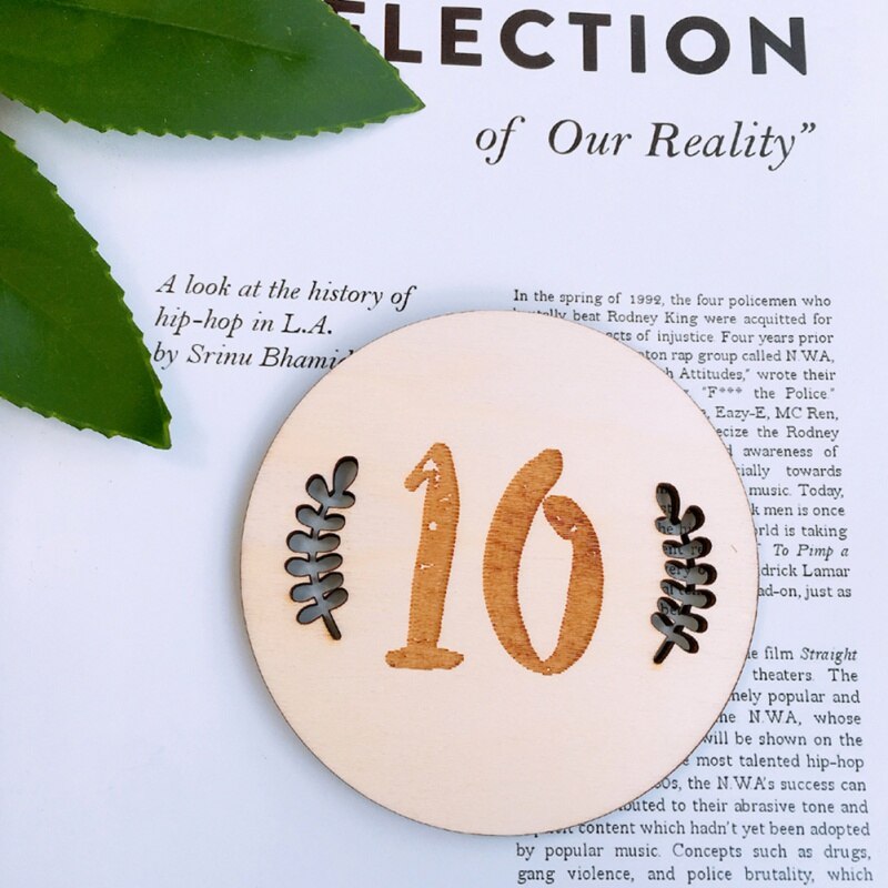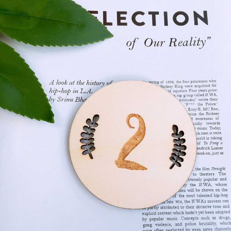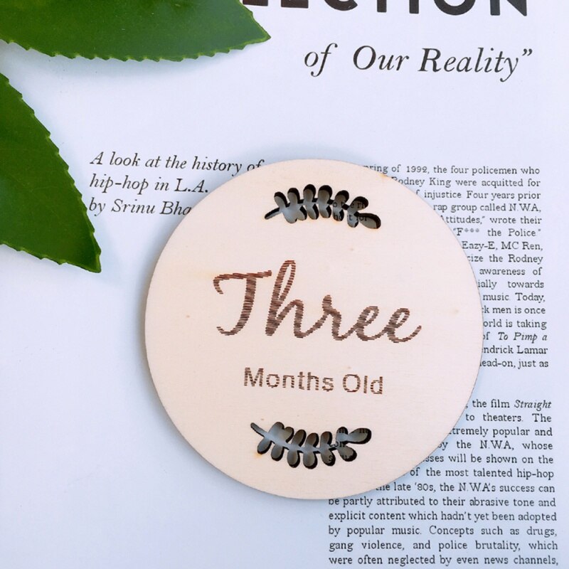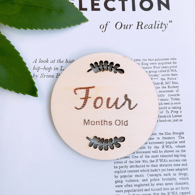 Household Baby Monthly Milestone Wooden Cards Baby Photography Props Home Milestone Card(Leaf Pattern,English Twelve)