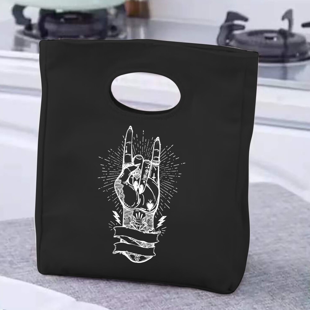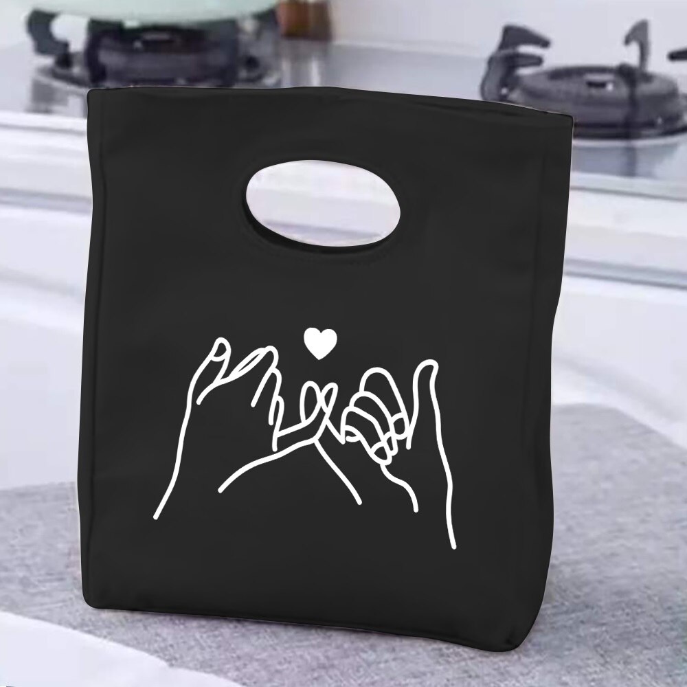 Lunch Bag Handle Insulation Cooler Bag Lunch Box Picnic Travel Portable Food Storage White Picture Printed Thermal Food Bag