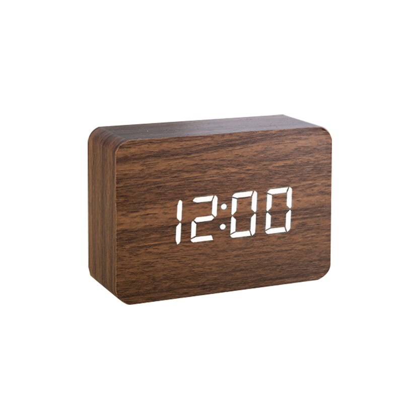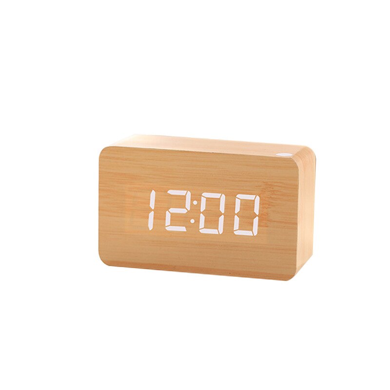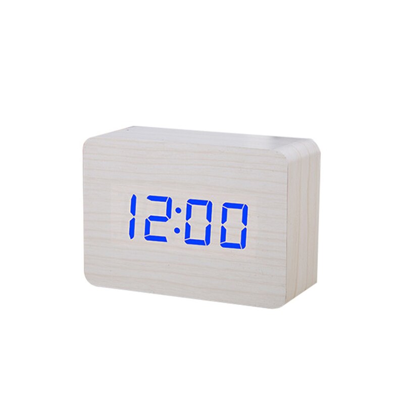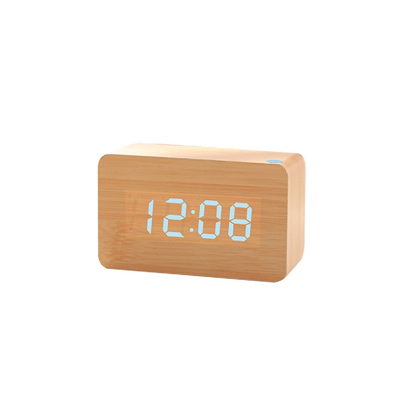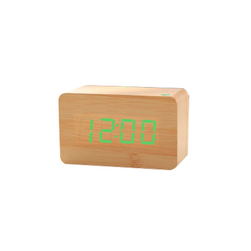 Multicolor LED Wooden Alarm Clock Watch Table Voice Control Digital Wood Electronic Desktop Clock USB/ Powered Clocks