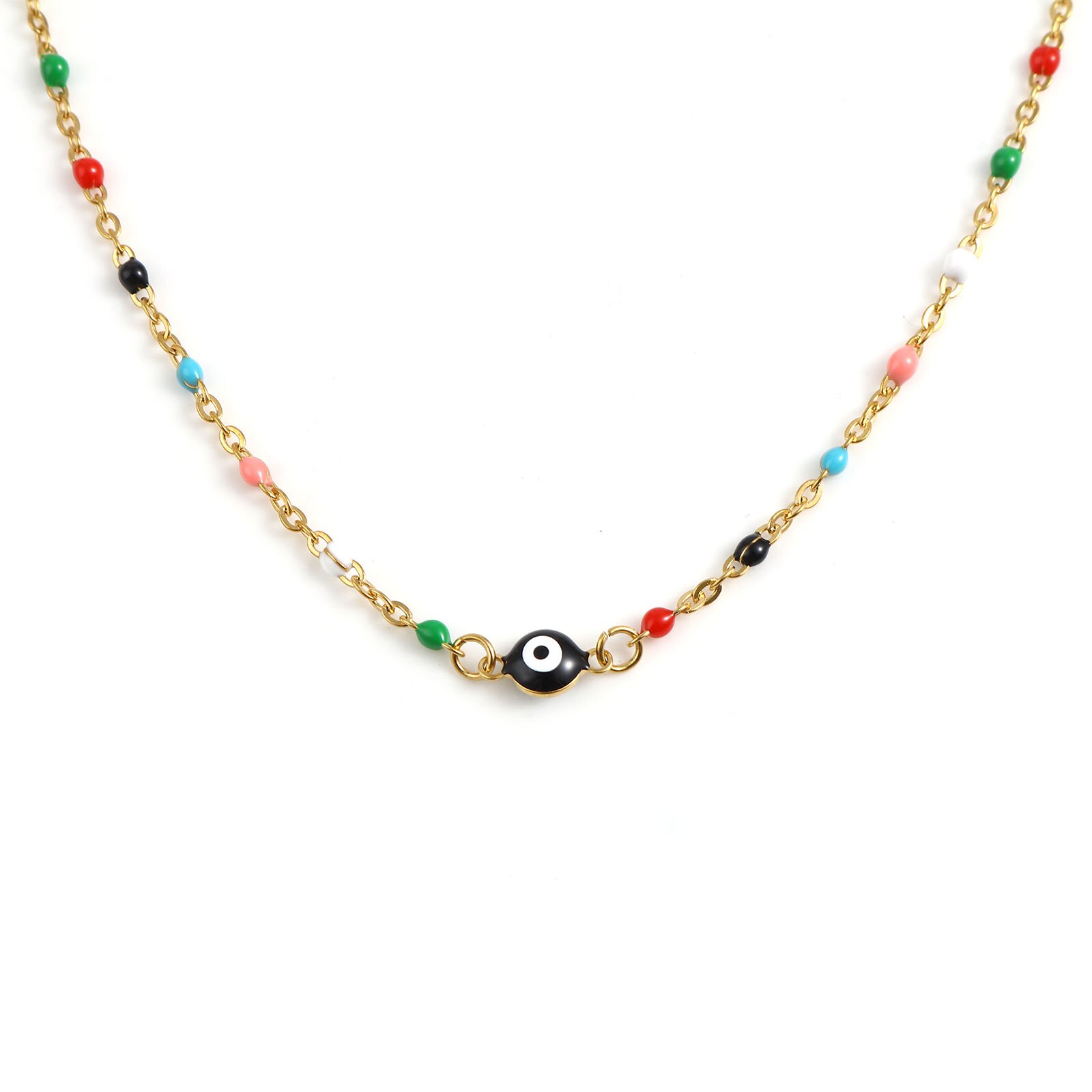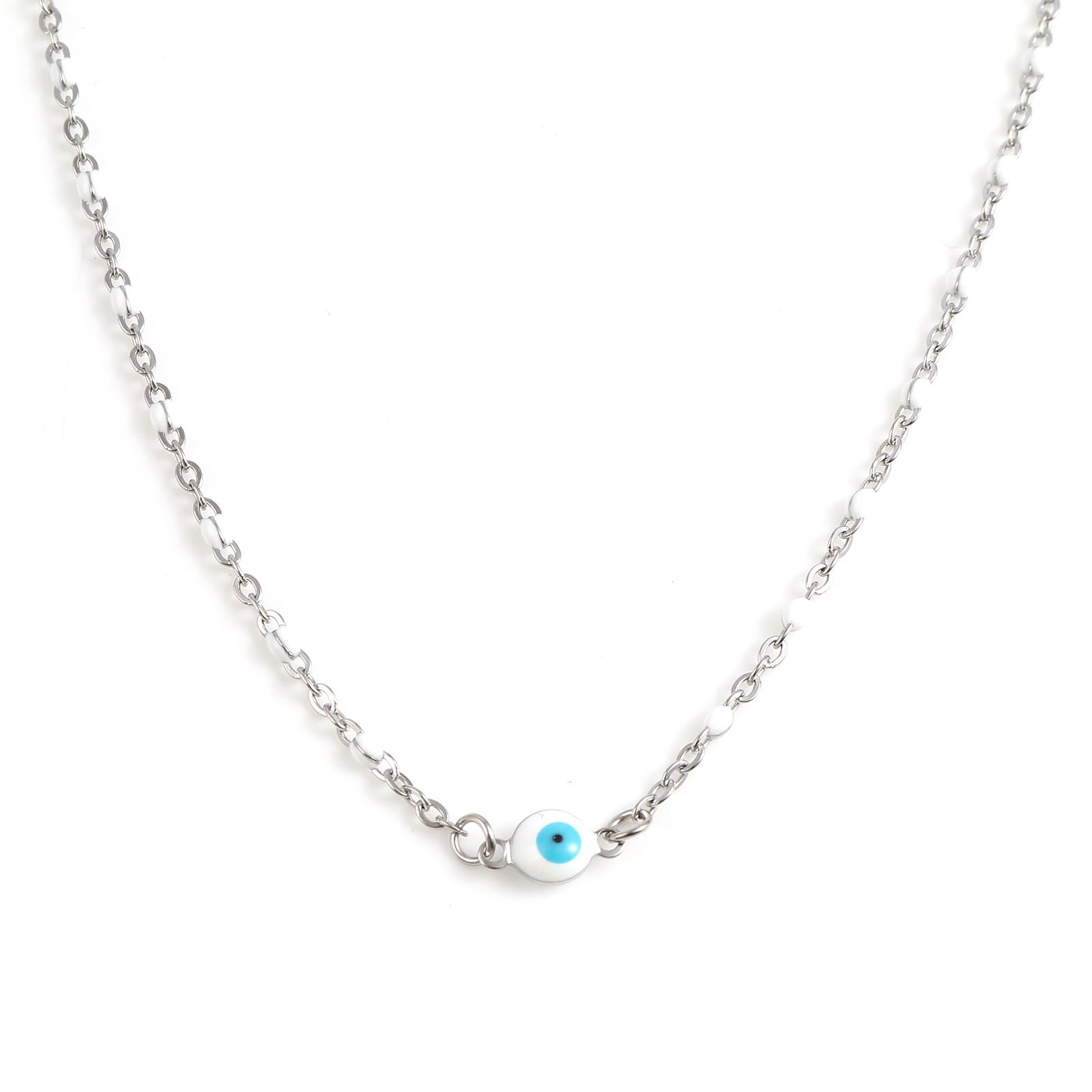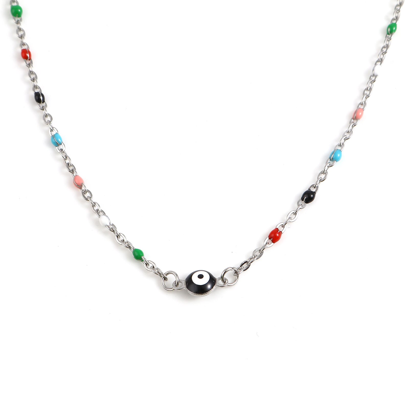 Religious Stainless Steel Link Cable Necklaces Enamel Round Evil Eye Connector Chains Necklace For Women Neck Jewelry Findings