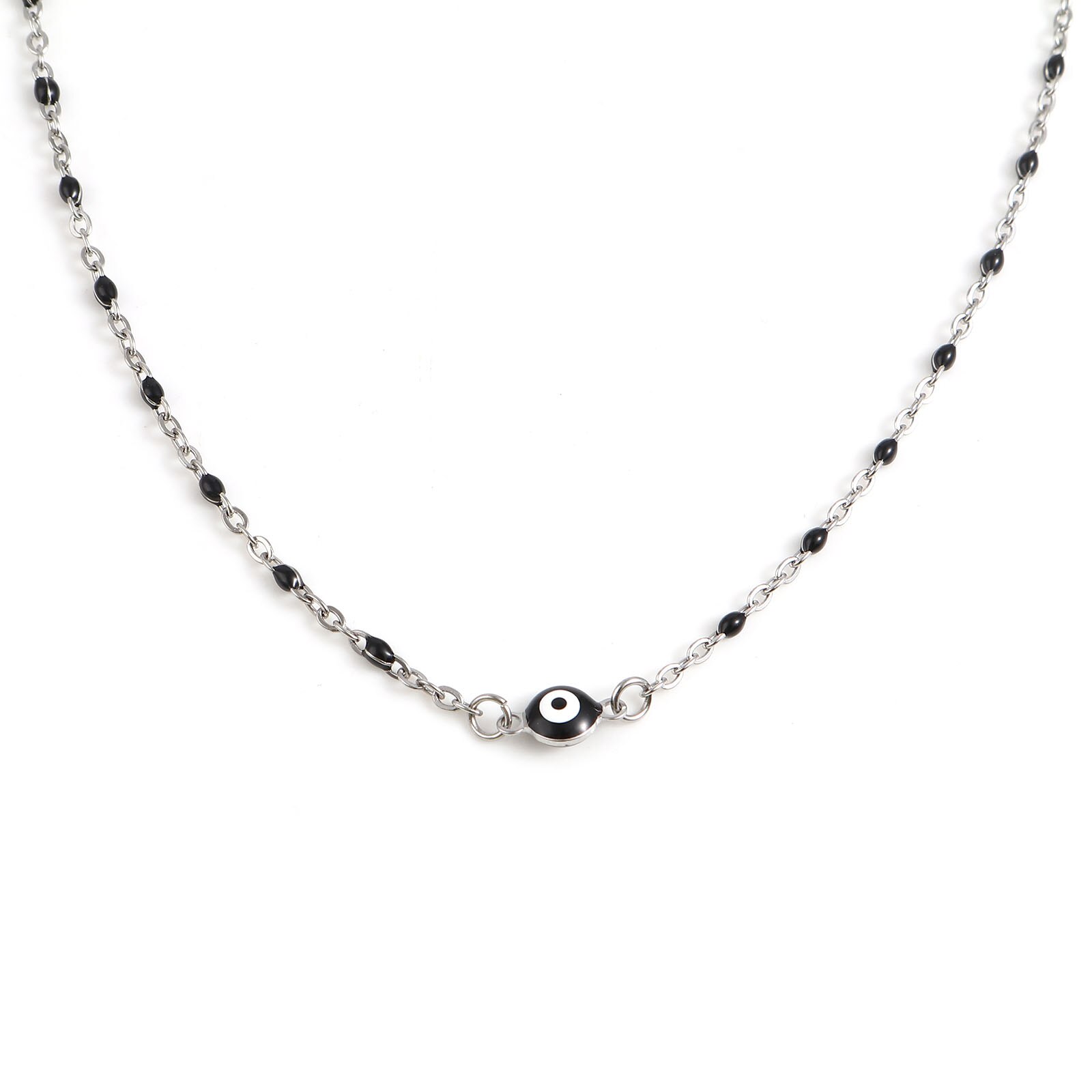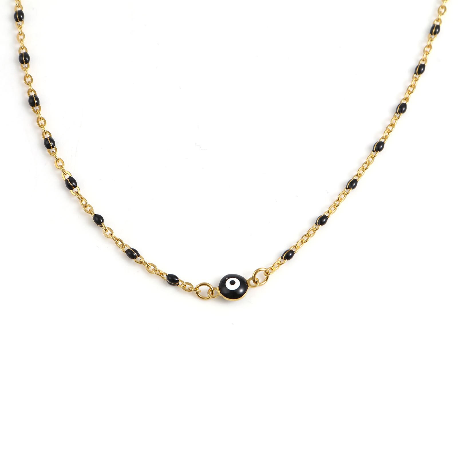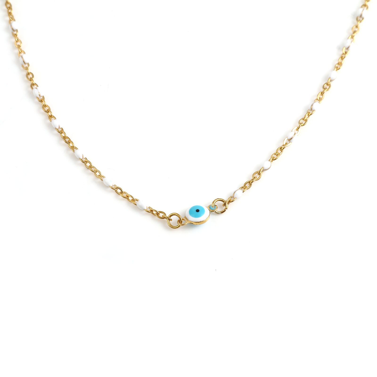 Religious Stainless Steel Link Cable Necklaces Enamel Round Evil Eye Connector Chains Necklace For Women Neck Jewelry Findings