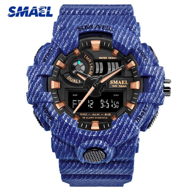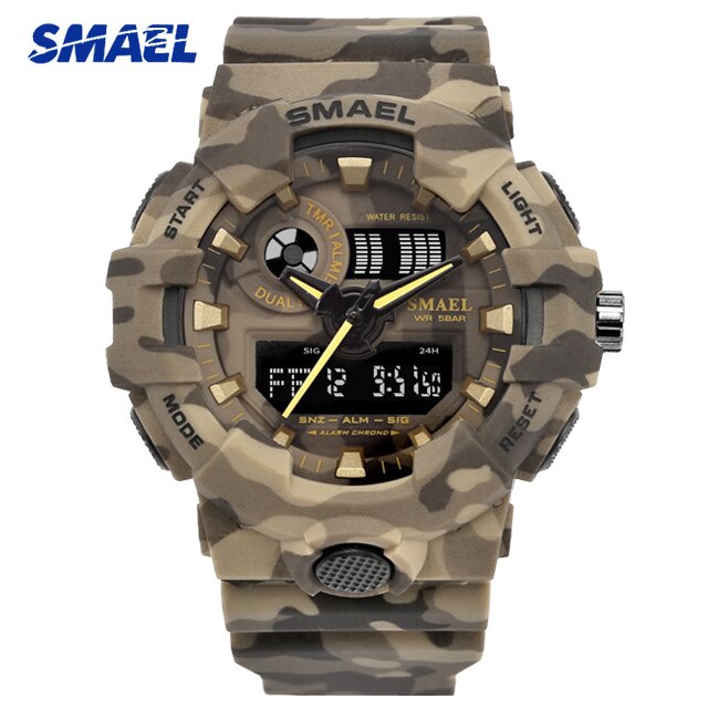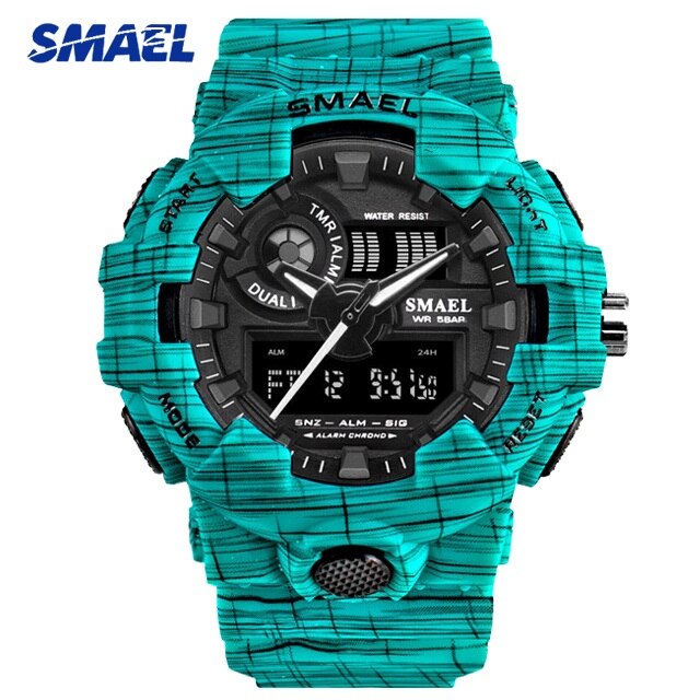 SMAEL Blue Camouflage Sports Watches Men Digital Wrist watches Man Student Quartz Electronic Dual Display Wristwatches
