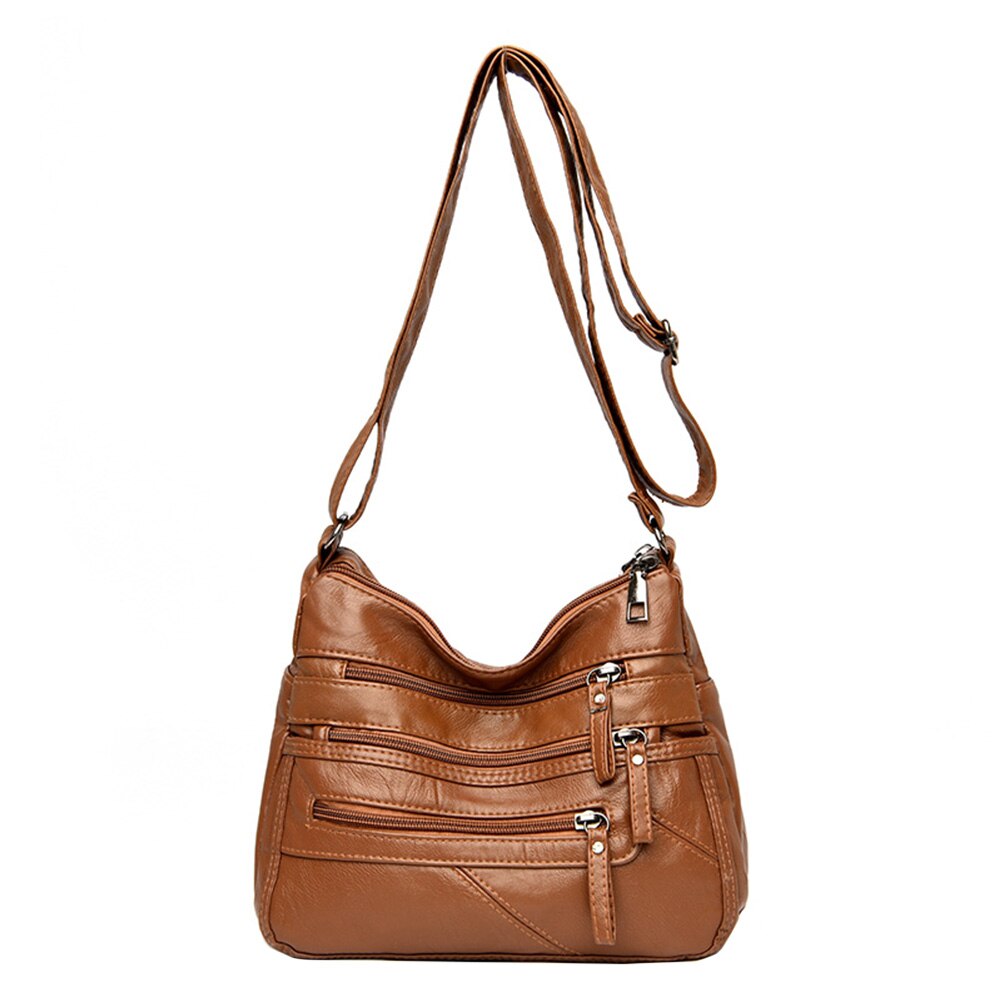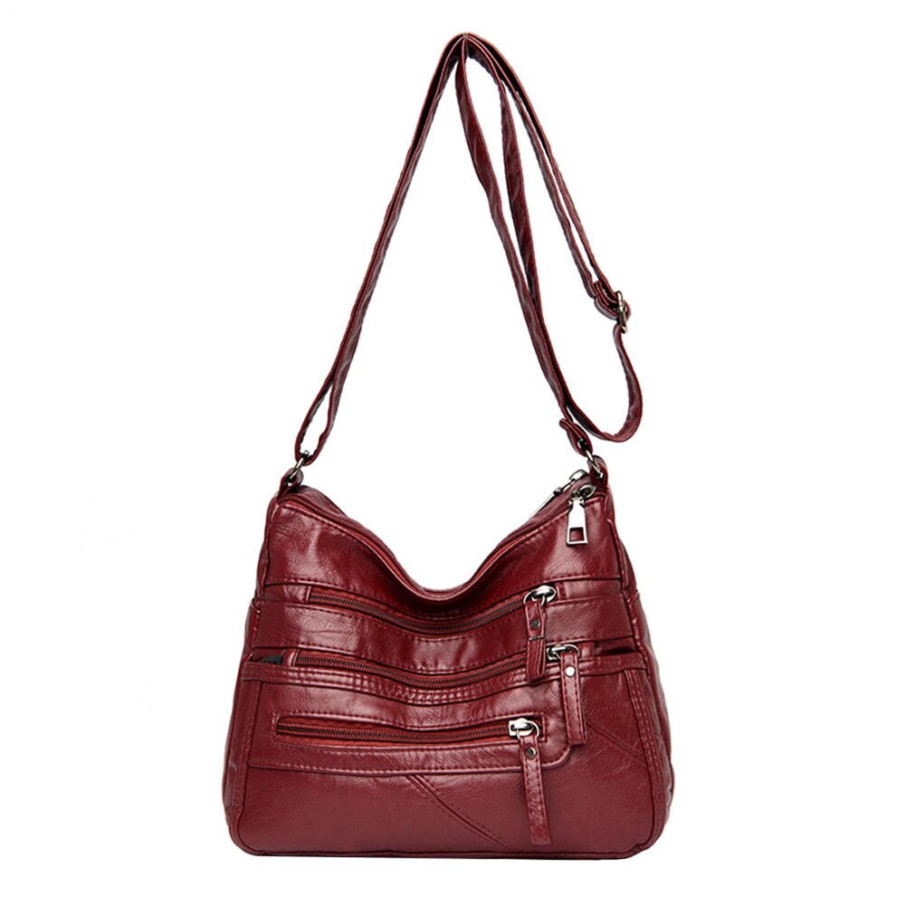 Solid Crossbody Bag Casual Women PU Shopping Street Shoulder Bags Large Capacity Multi-zipper Mother Top-handle Handbags